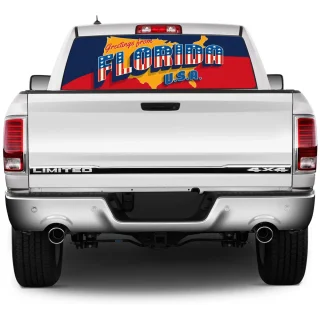 High Quality Pick-Up Truck Perforated Rear Window Sticker – Postcard Greetings from Florida