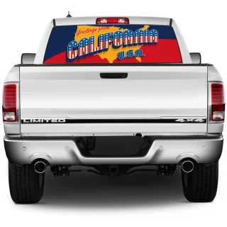 High Quality Pick-Up Truck Perforated Rear Window Sticker – Postcard Greetings from California